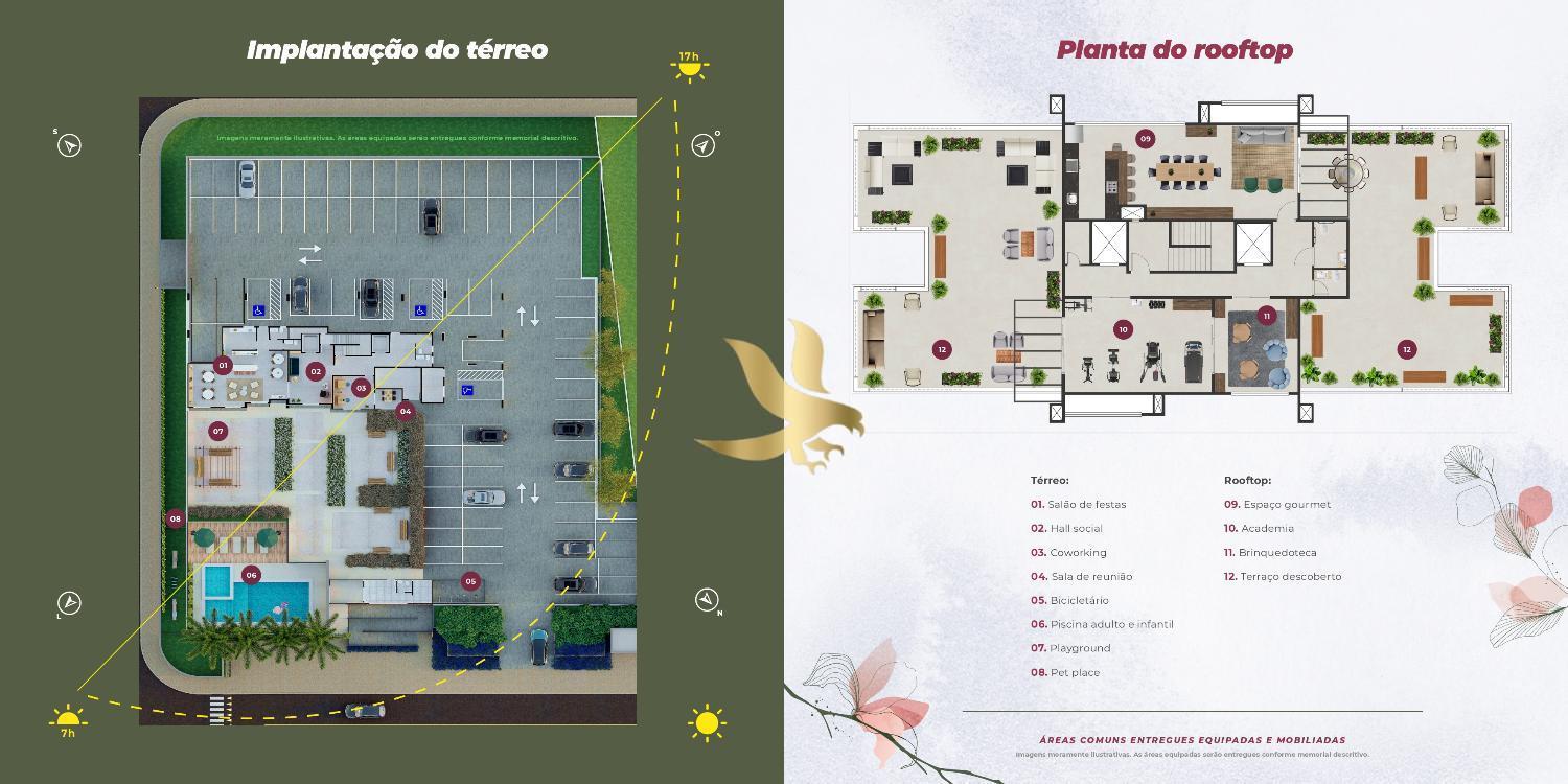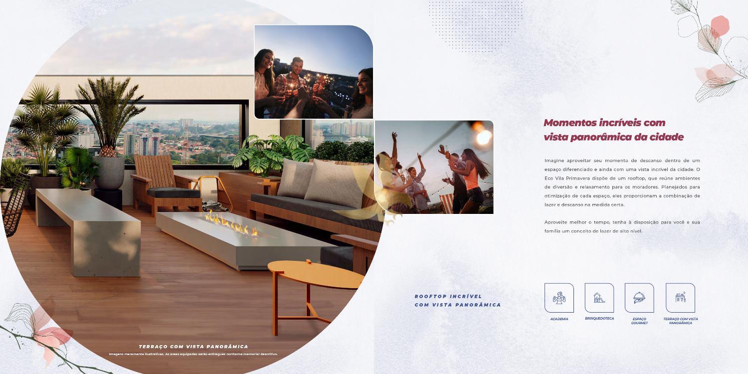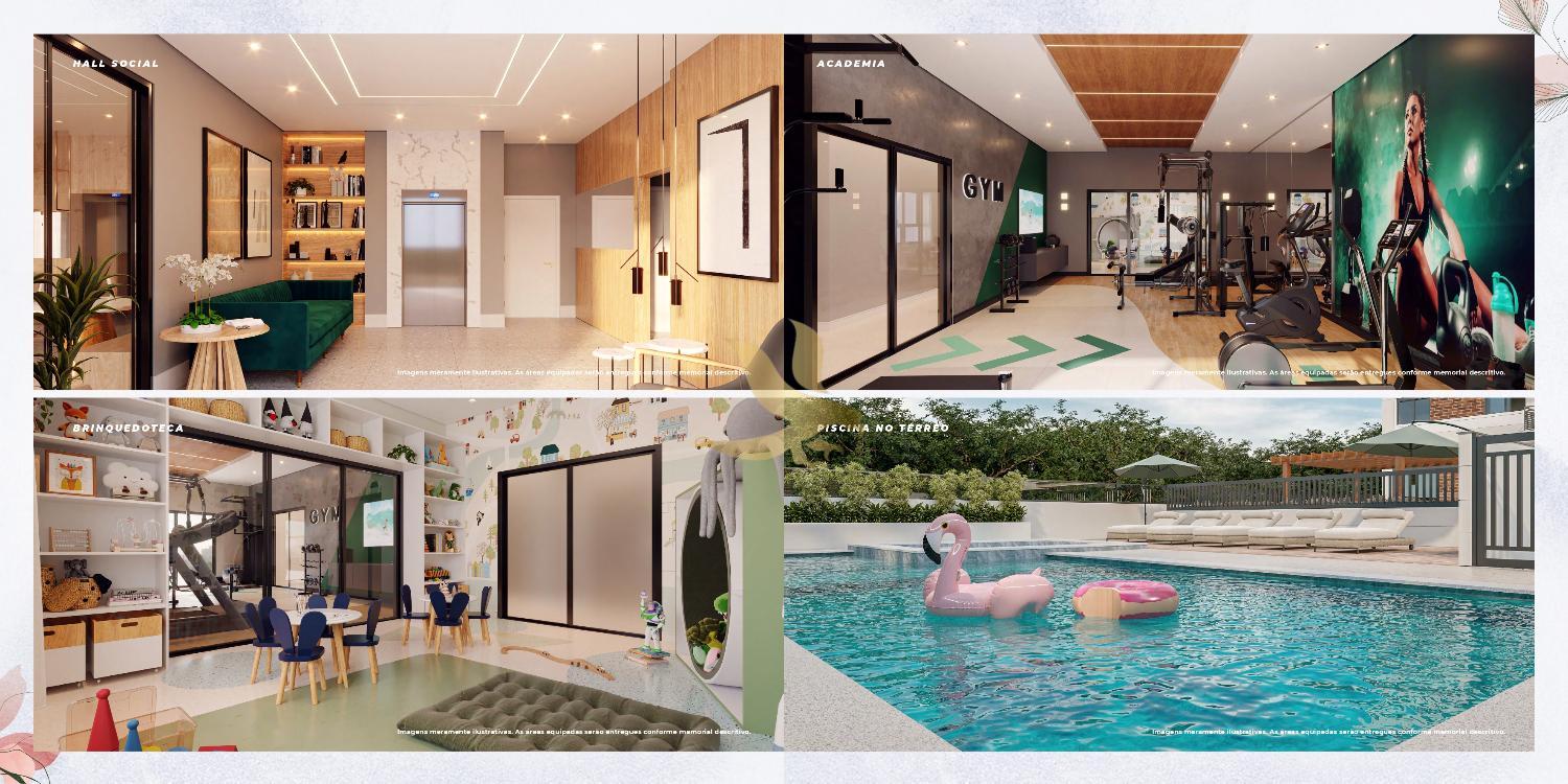 A experiência de morar aqui transcende as paredes do apartamento com um rooftop exclusivo que descortina uma vista panorâmica deslumbrante da cidade. Este refúgio nas alturas abriga um espaço gourmet refinado, academia e brinquedoteca, proporcionando um lazer de alto nível em absoluta privacidade. No térreo, a sofisticação continua com piscinas adulto e infantil, salão de festas elegante, coworking e pet place, todos entregues equipados e decorados.