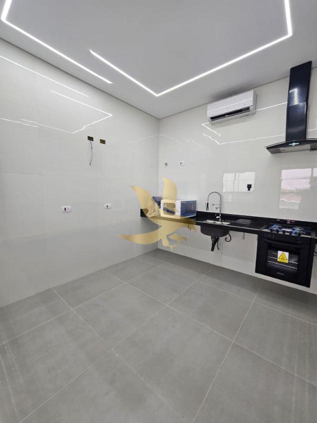 Na parte superior, o imóvel conta com 2 salas com banheiro, ar-condicionado e TV, além de cozinha totalmente planejada equipada com ar-condicionado, fogão, coifa, micro-ondas, bebedouro e geladeira. Há ainda um banheiro social completo.