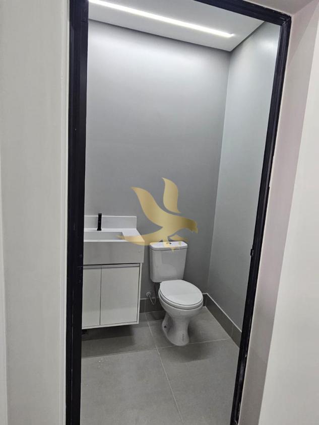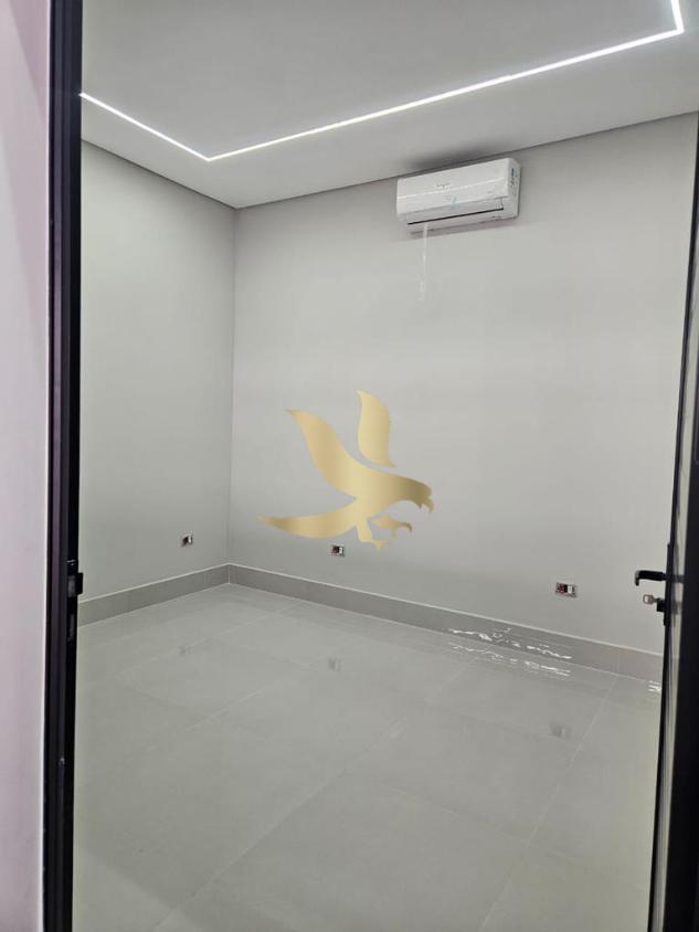 Na parte inferior, possui amplo salão com área de café equipada com bebedouro, 2 banheiros, 2 aparelhos de ar-condicionado, porta de enrolar automatizada e porta de vidro tipo slide door (abertura total). O imóvel também conta com porão para armazenamento e sistema de segurança com 4 câmeras instaladas.
