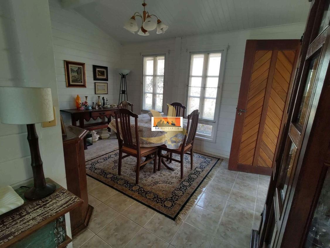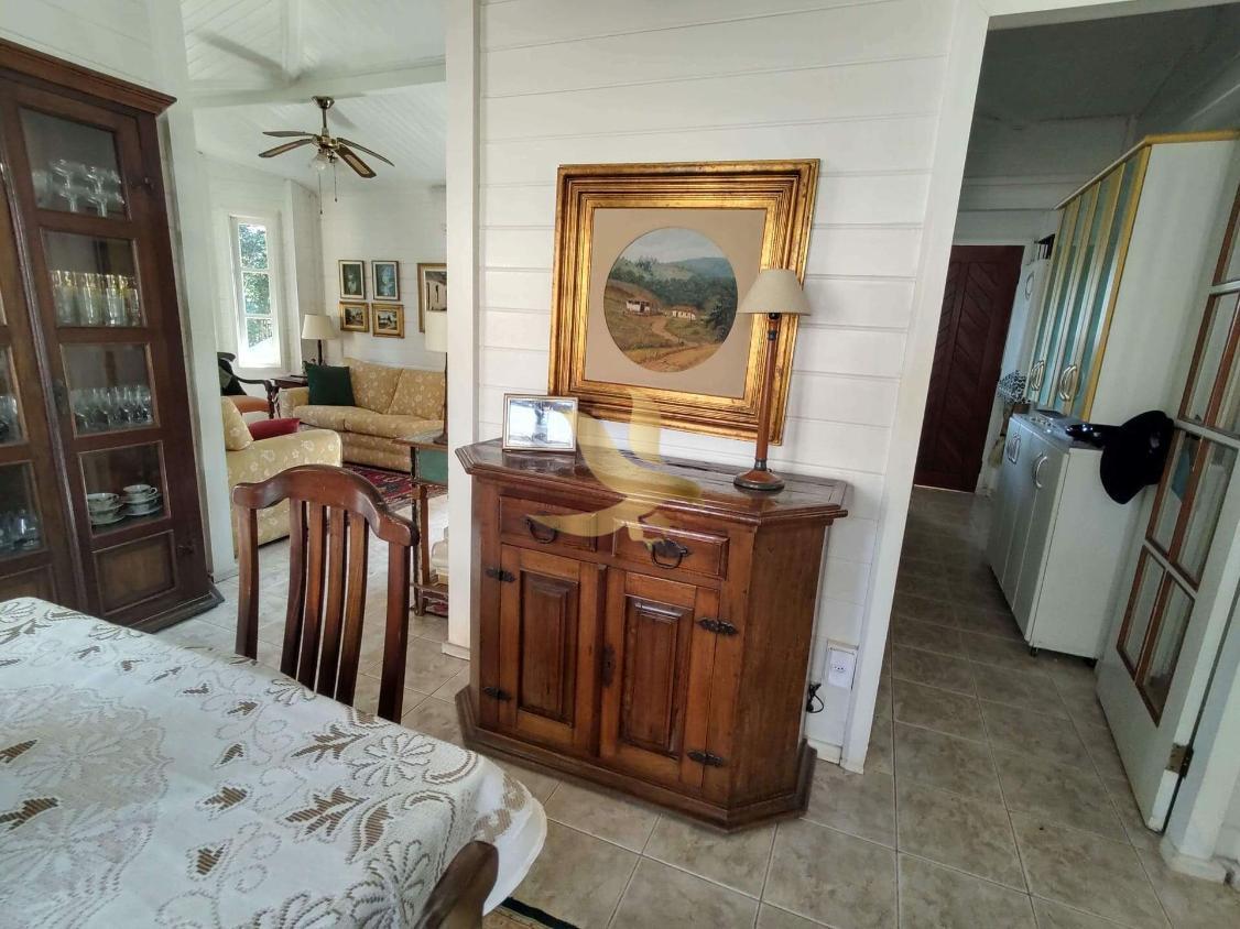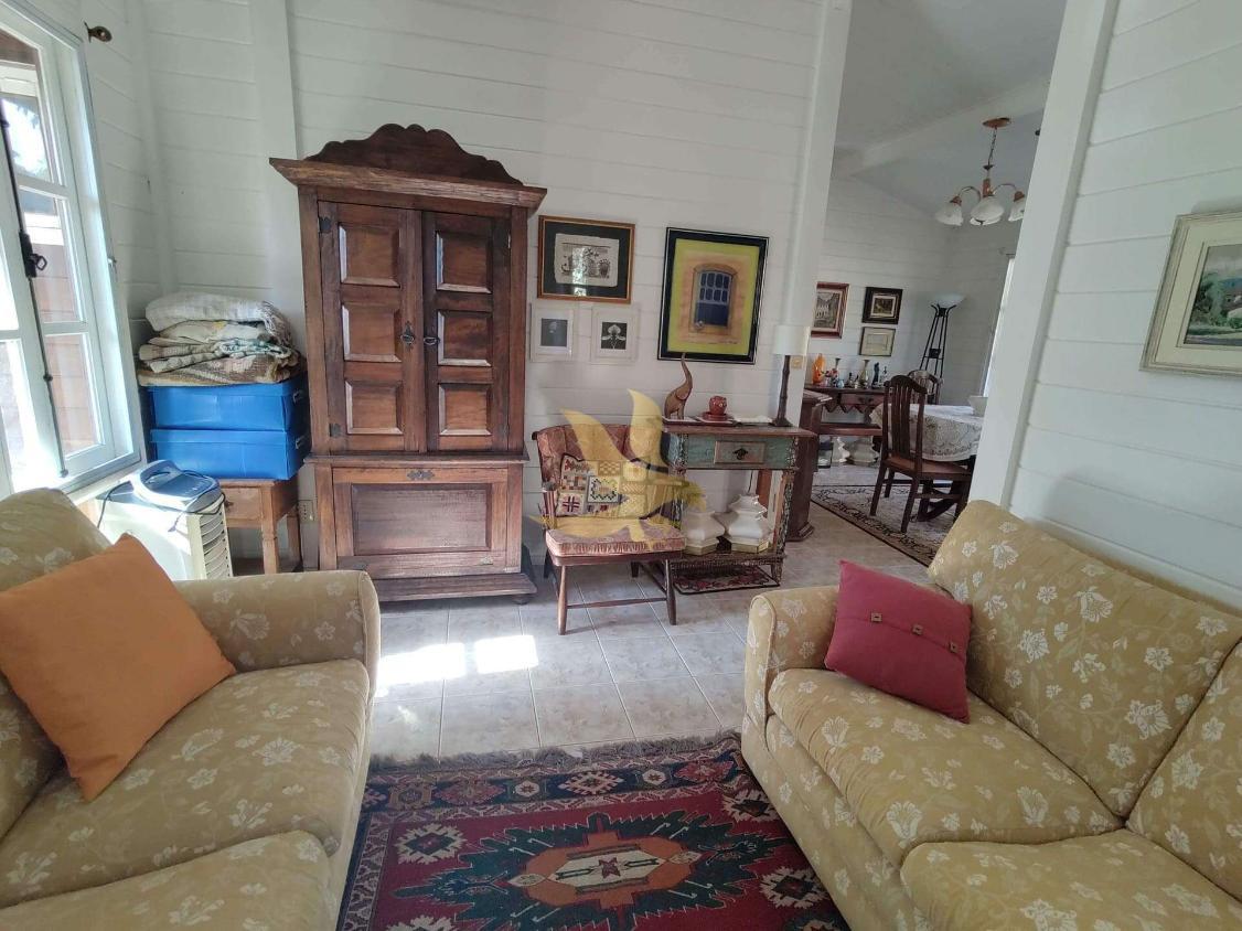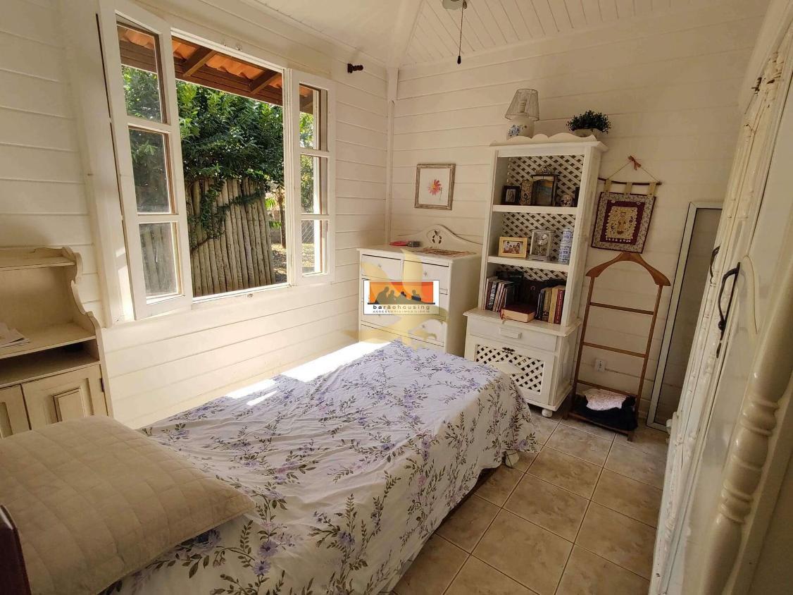 A segunda construção é em alvenaria, também com 2 dormitórios (1 suíte), sala de estar e jantar integradas, banheiro social, cozinha, além de churrasqueira e fogão a lenha, ideais para momentos de lazer.