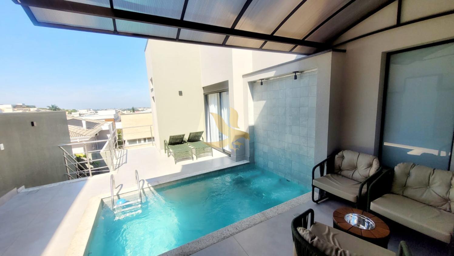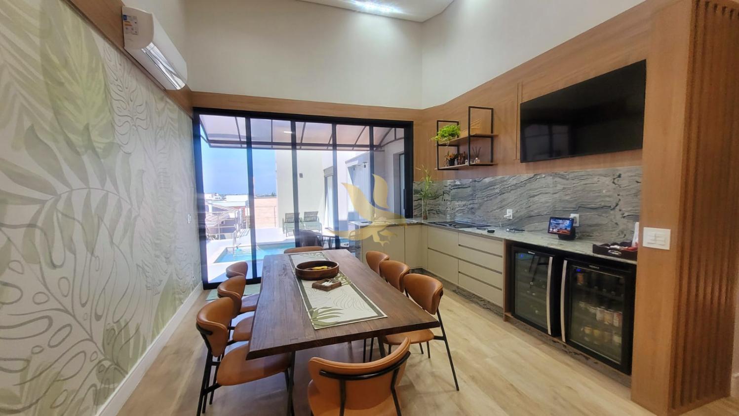 A área social integra sala de estar, sala de jantar, cozinha planejada e despensa, criando um ambiente funcional e moderno. O imóvel conta ainda com lavabo, 2 banheiros adicionais e banheiro exclusivo para apoio à piscina.