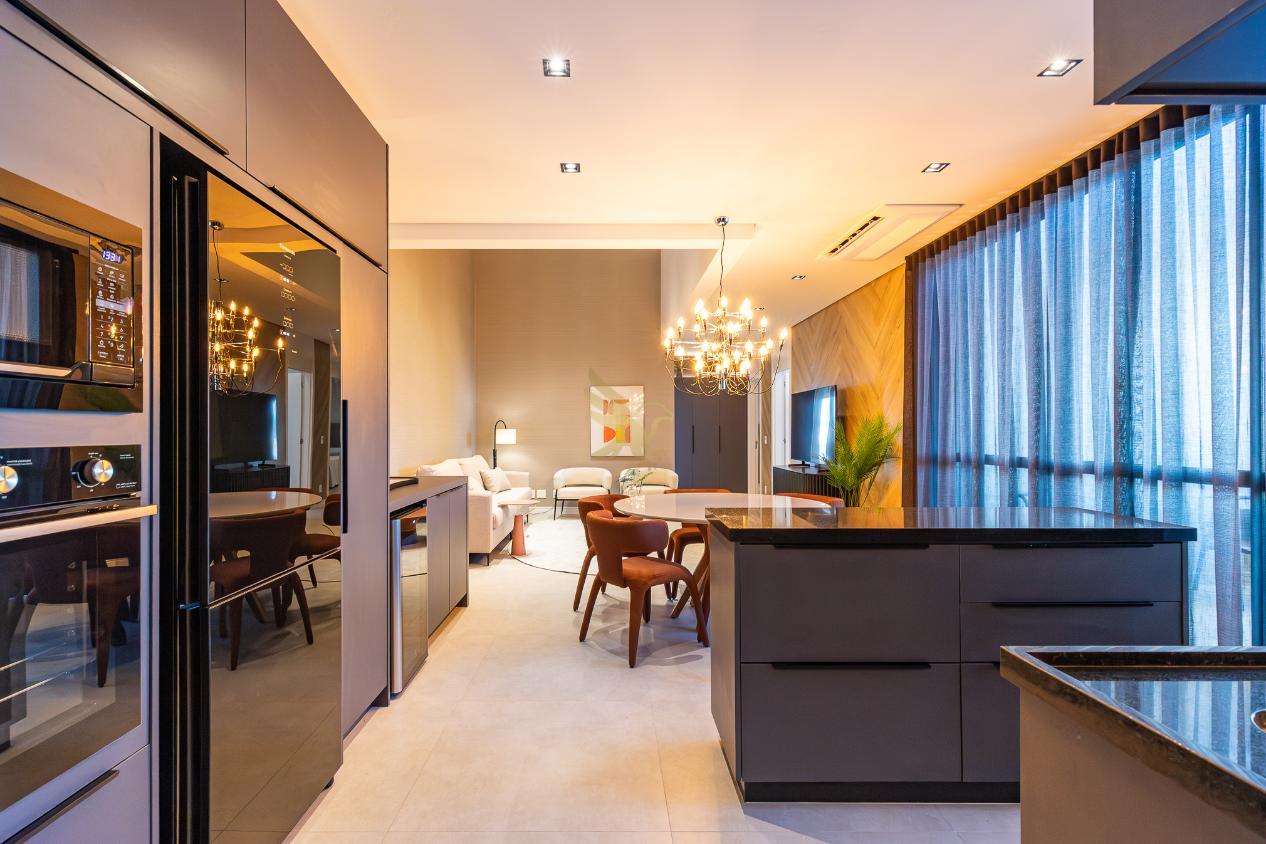 A sofisticação impera nas três suítes climatizadas, incluindo a master com closet integrado, 2 salas (estar e jantar), 5 banheiros e sua cozinha é planejada com eletrodomésticos de ponta. A generosa varanda gourmet é um convite ao entretenimento. O imóvel oferece três vagas de garagem na melhor localização do subsolo (em frente aos elevadores) e um amplo box privativo.