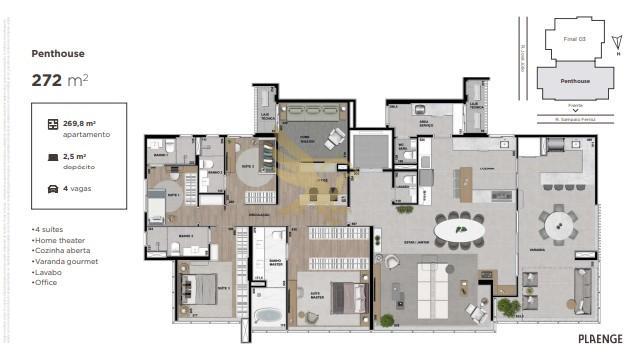 Os apartamentos do The Mark são o epítome do alto padrão da Plaenge, combinando design sofisticado com funcionalidade ímpar, resultando em um refúgio de exclusividade no coração do Cambuí. Cada residência é um espaço de sofisticação e elegância, com plantas que variam de 133 m² a 332 m², incluindo opções duplex e penthouse com até 4 suítes e 4 vagas de garagem, todas com depósito privativo, atendendo aos estilos de vida mais exigentes. O compromisso com a excelência se traduz nos acabamentos finos e materiais de altíssima qualidade empregados em cada centímetro do imóvel. Entre os diferenciais, destacam-se o forro de gesso em todo o apartamento, lavabos com cuba esculpida em quartzo, banheiros com nichos para shampoo esculpidos e ralo linear. Para garantir o máximo conforto, há infraestrutura para ar-condicionado (sistema multi-split) e excelente atenuação acústica entre as unidades, assegurando a tranquilidade e a privacidade que o público de alto padrão busca.