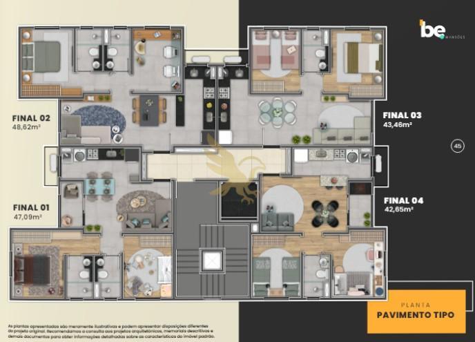 O projeto redefine a funcionalidade com apartamentos de 2 dormitórios, incluindo opções com suíte e unidades Garden, todos dotados de uma varanda integrável que amplia a percepção de espaço e liberdade. Com plantas inteligentes que variam entre 42m² e 52m², as unidades oferecem sala em dois ambientes e cozinha americana, unindo design contemporâneo à praticidade exigida pela rotina moderna, tudo complementado por vagas de garagem livres.