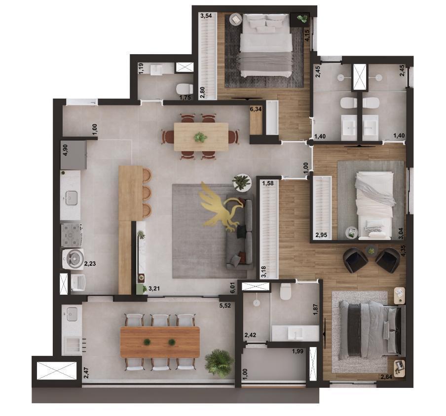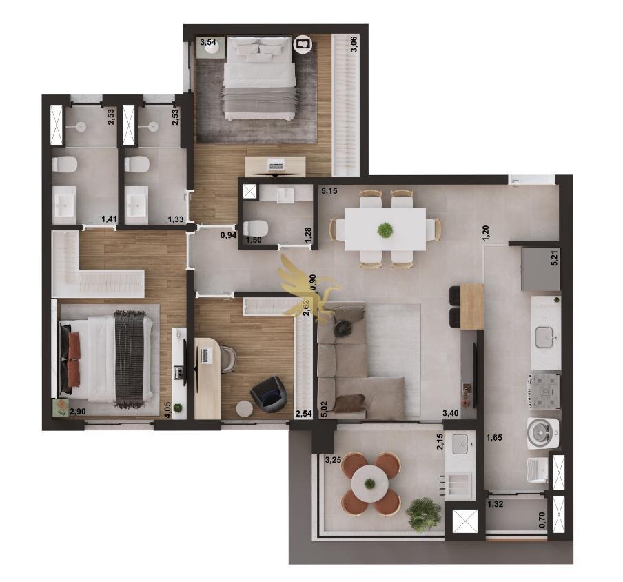 Com uma arquitetura de torre única e imponente, o projeto da Bild apresenta residências de luxo com plantas de 90m² e 120m², dispondo de até 3 suítes e varandas gourmet integradas ao living, projetadas para maximizar a amplitude e a iluminação natural. As plantas inteligentes oferecem lavabo, cozinha fechada. Os acabamentos de excelência incluem porcelanato nas áreas molhadas e a possibilidade de personalização completa através do serviço exclusivo Bild Design, permitindo que cada morador imprima sua essência em pisos, bancadas, metais e revestimentos. Cada detalhe reflete o compromisso com a excelência, desde a infraestrutura para automação e carregamento de carros elétricos até o Bild Design, que possibilita uma curadoria personalizada de acabamentos para tornar sua unidade verdadeiramente única.