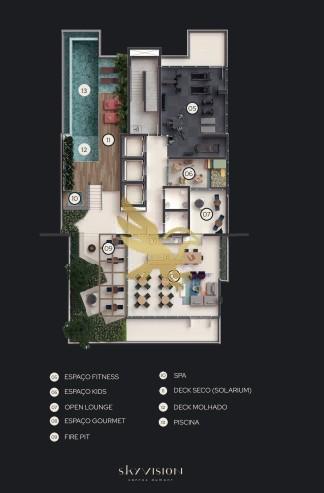 O lazer, elevado ao rooftop, proporciona uma experiência de contemplação com vistas panorâmicas deslumbrantes da cidade. Os moradores desfrutam de uma piscina de borda infinita climatizada, SPA com hidromassagem, e um sofisticado Fire Pit com lareira para momentos memoráveis. O condomínio ainda contempla Espaço Gourmet e Fitness climatizados, além de uma fachada ativa que integra serviços e conveniência diretamente ao pé do seu lar.