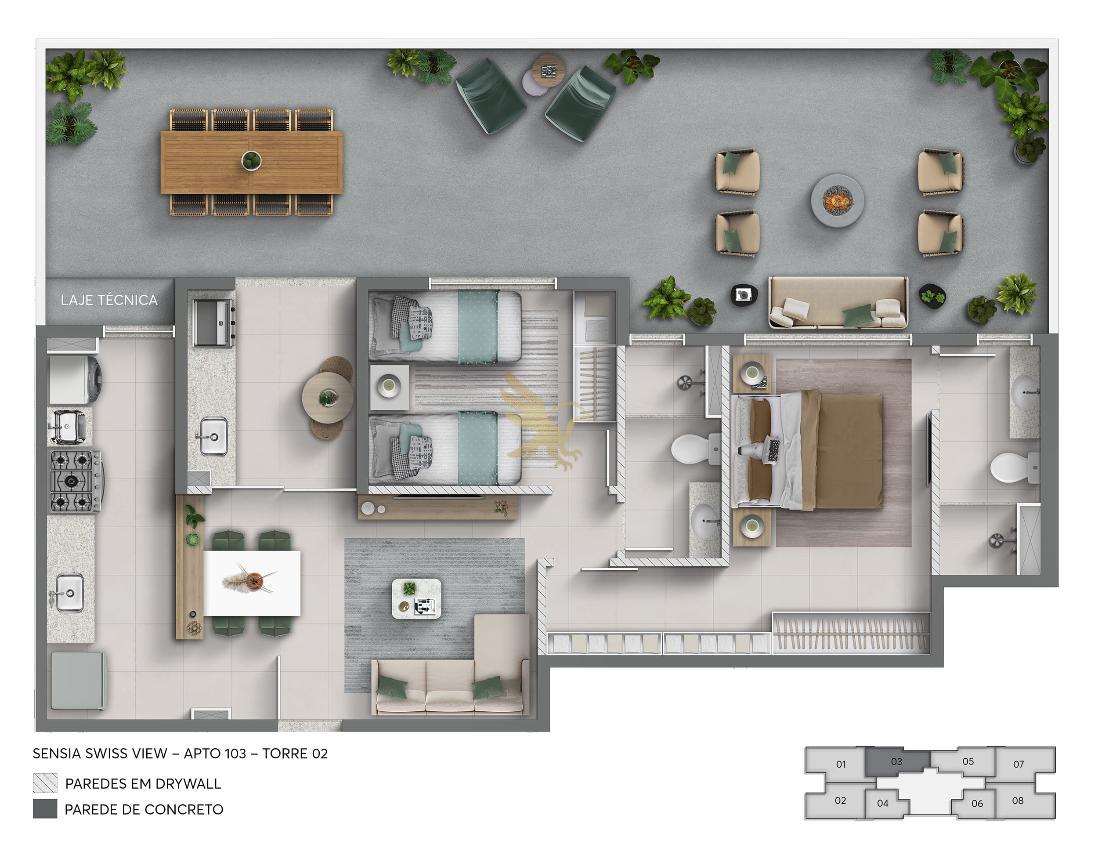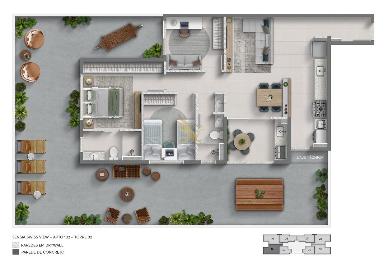 O lazer é uma experiência à parte, com mais de 25 itens premium equipados e decorados. Das piscinas com vista panorâmica à academia de alta performance, passando por espaços dedicados ao coworking, gourmet multimídia e até um pomar privativo, cada metro quadrado foi projetado para elevar o bem-estar. A infraestrutura de ponta inclui ainda preparação para individualização de água, ar-condicionado e tecnologia wi-fi nas áreas comuns.