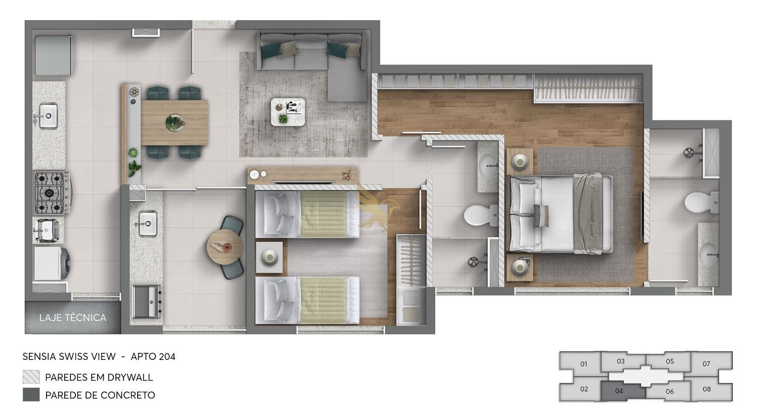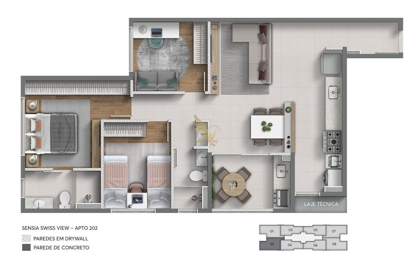 A arquitetura contemporânea das 5 torres, distribuídas em um terreno de mais de 22 mil m², abriga unidades que privilegiam o espaço e a luz natural. Com plantas de até 74,32 m² e opções de 2 ou 3 dormitórios com suíte, os apartamentos destacam-se pela varanda gourmet e pela flexibilidade total: paredes em drywall permitem a personalização absoluta dos ambientes, com consultoria especializada inclusa para que cada detalhe reflita a identidade do morador.