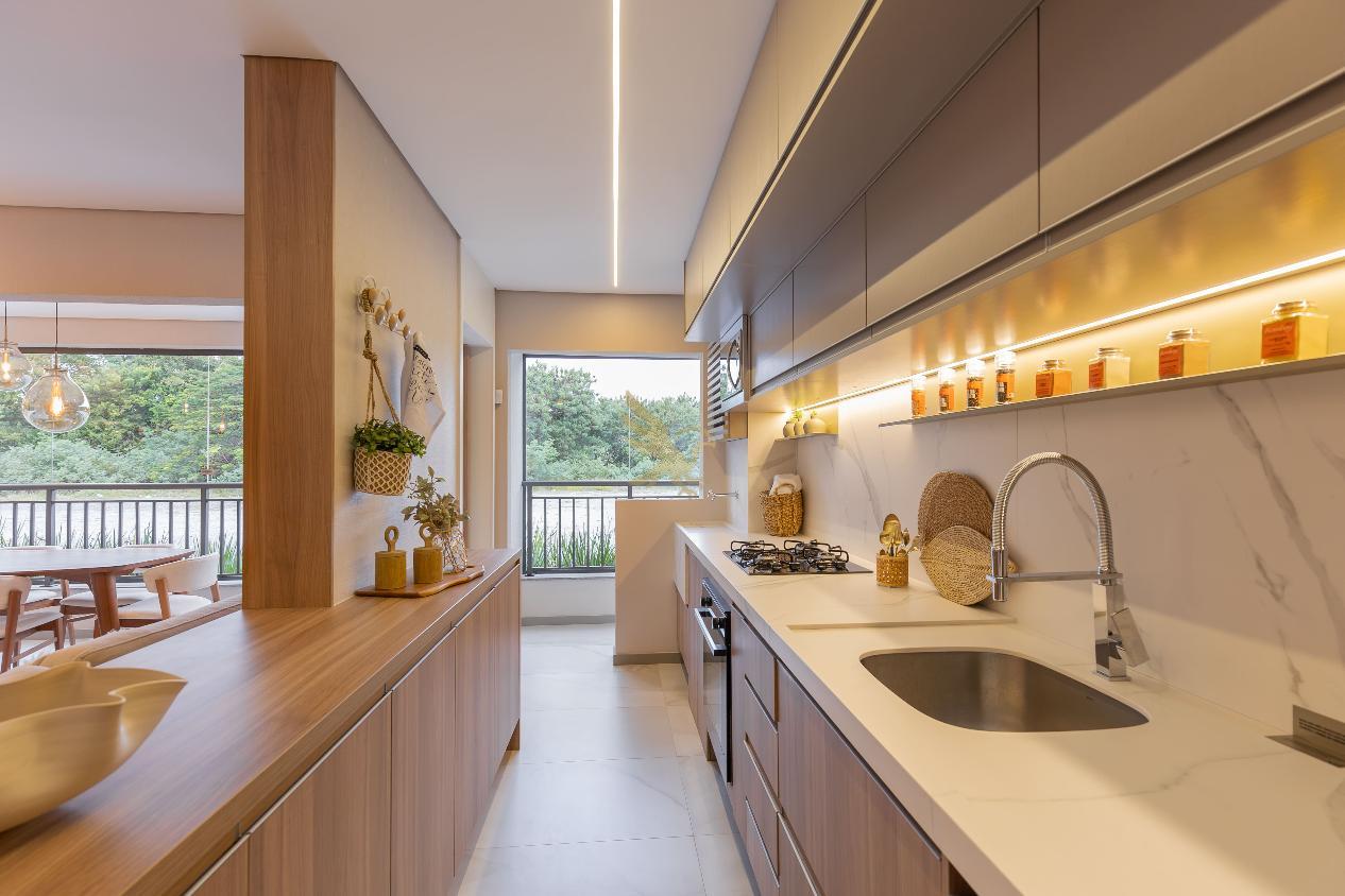 As três torres residenciais apresentam plantas meticulosamente planejadas, de unidades de 67m² a 91m², todas com foco na integração e privacidade. Os diferenciais técnicos elevam o padrão do projeto, incluindo alvenaria convencional para flexibilidade de customização, elevadores sociais inteligentes com biometria e o programa Personalize Visconde, que assegura que cada detalhe dos acabamentos à infraestrutura para automação e ar-condicionado reflita o requinte e a identidade de seus proprietários.
