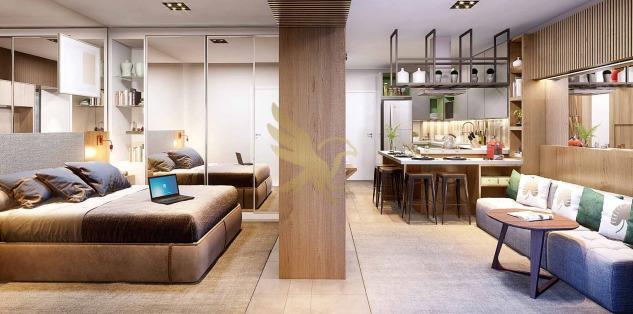 Apartamento de 41m² possui sala de estar com bom desempenho acústico (diminuição de ruídos), cozinha estilo americana, banheiro com box de vidro temperado com boa circulação de ar, 1 suíte com infraestrutura completa para ar condicionado, varanda com raio linear acompanhada de guarda copos de vidro, piso da varanda nivelado com a sala e 2 vagas destinadas a carro e moto, além de medição de água individualizada com o medidor já instalado, mesclando tecnologia e praticidade para as mais diversas rotinas.