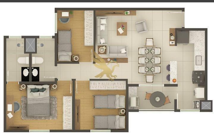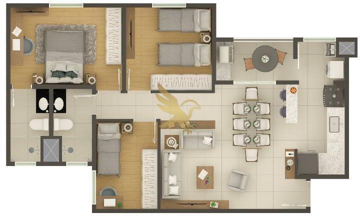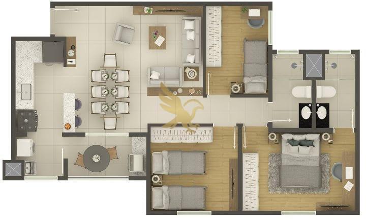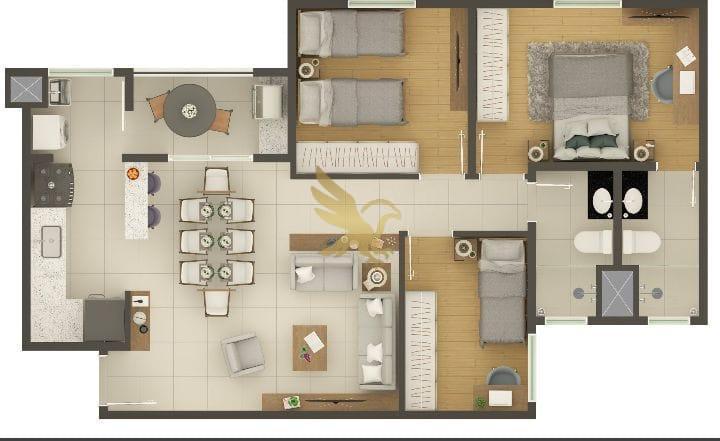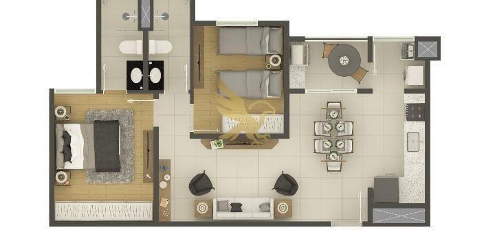 As residências foram concebidas com um padrão construtivo impecável, oferecendo plantas de 60,79m² a 79,55m² que privilegiam a iluminação e ventilação natural em todos os ambientes. Cada detalhe reflete modernidade, desde a elegante varanda gourmet com opções de plantas garden para experiências ao ar livre até diferenciais tecnológicos como entradas USB na sala e quartos, além de infraestrutura completa para climatização e aquecimento a gás. É o cenário ideal para uma vida contemporânea, onde o conforto encontra a funcionalidade.