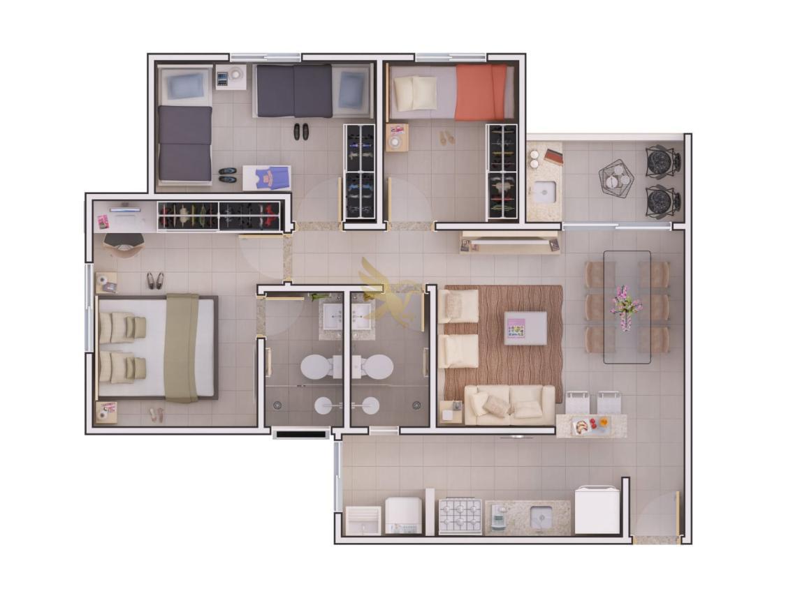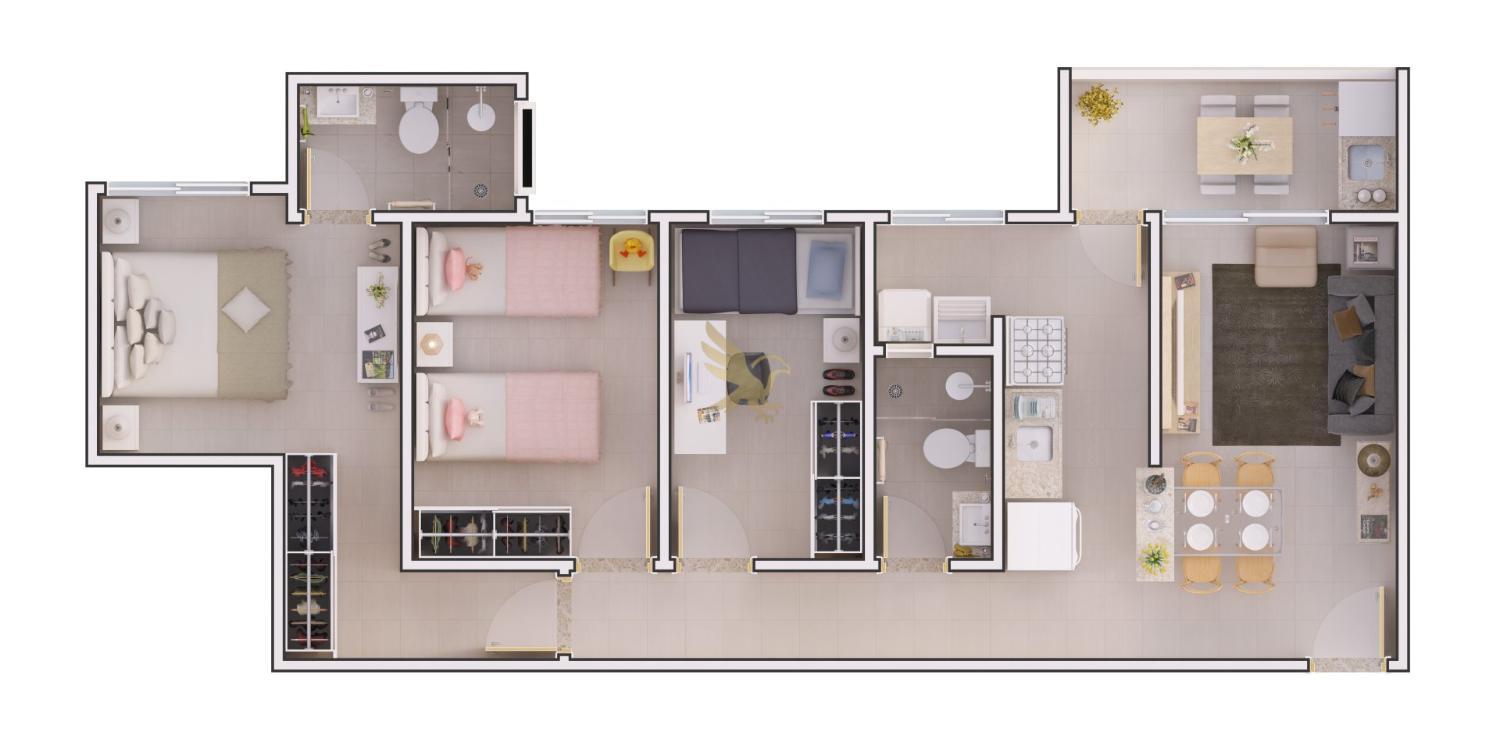 Os apartamentos, com metragens de 70 m² e 72 m², foram projetados com plantas inteligentes que priorizam o conforto e a integração. Cada unidade dispõe de 3 dormitórios (sendo 1 suíte), sala de jantar e estar harmonizadas, além de uma charmosa varanda gourmet com churrasqueira, o cenário ideal para momentos de lazer privativo com uma estética contemporânea e acabamentos refinados.