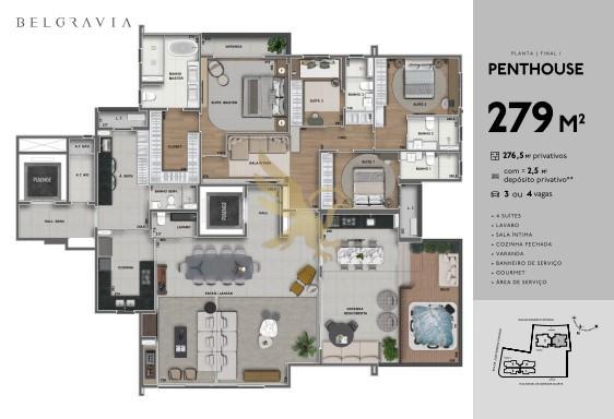 Belgravia Nova Campinas; apartamentos de 136m² a 279m² em opções tipo, garden e penthouse com infraestrutura exclusiva