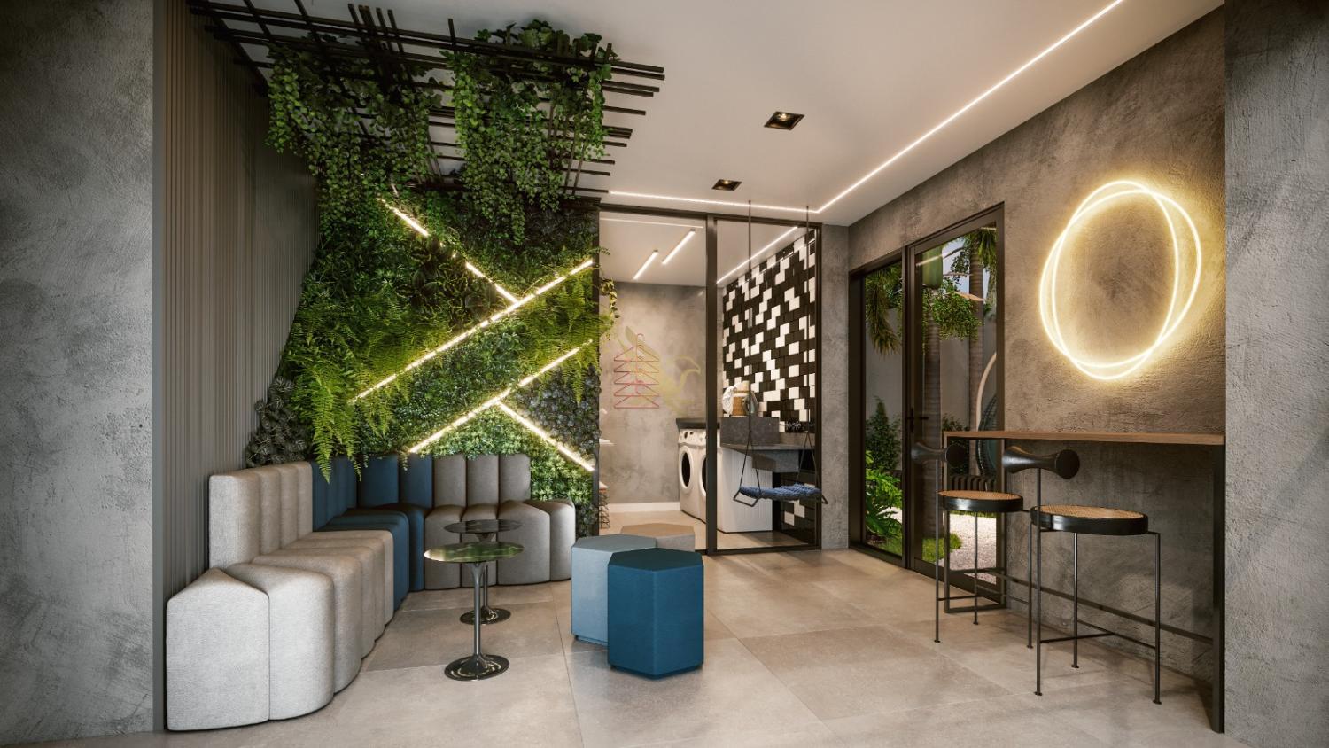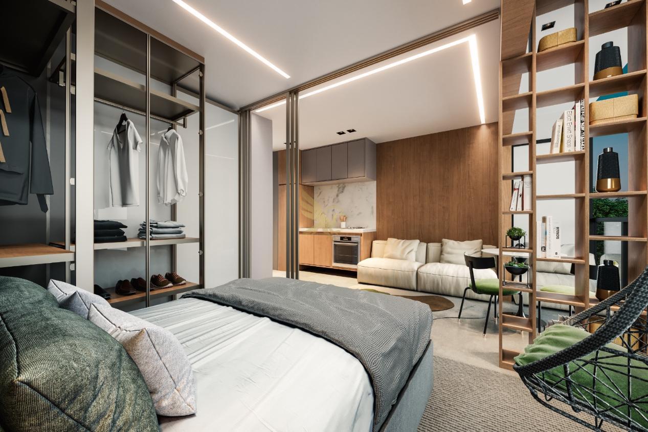 A arquitetura, assinada pelo renomado escritório de Octávio de Siqueira, traduz um estilo de vida dinâmico e inteligente através de studios de 24m² a 29m² e unidades de 1 dormitório com 54m². Cada espaço foi planejado com rigor estético e funcional, apresentando diferenciais como fechaduras digitais, infraestrutura para automação e acabamentos em porcelanato retificado. É a síntese do minimalismo funcional, onde o conforto é potencializado por soluções tecnológicas que facilitam o cotidiano de quem vive em um ritmo global.